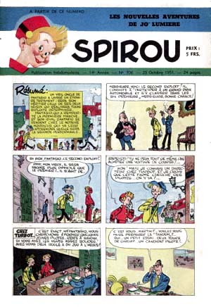 | AS | Surcouf : "Surcouf, roi des corsaires", Tif et Tondu : "La villa Sans-Souci", Spirou : "Spirou et les héritiers", Epervier bleu : "La planète silencieuse", Pippo : "Pippo au Mexique", Lucky Luke : "Hors la loi", Jean Valhardi : "Jean Valhardi contre le monstre", Jo Lumière : "La course des trotteurs", Red Ryder : "Séries dhistoires" | ||