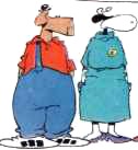 Georges, le cochon et Emmy, la vache sont les serveurs du restaurant. |