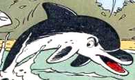 Tibond est un dauphin qui parle mais avec un défaut de prononciation. Il est ami avec les deux naufragés. |