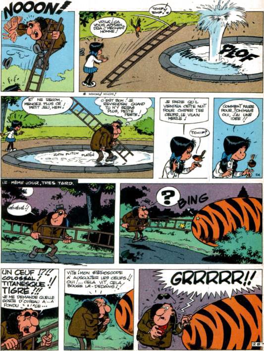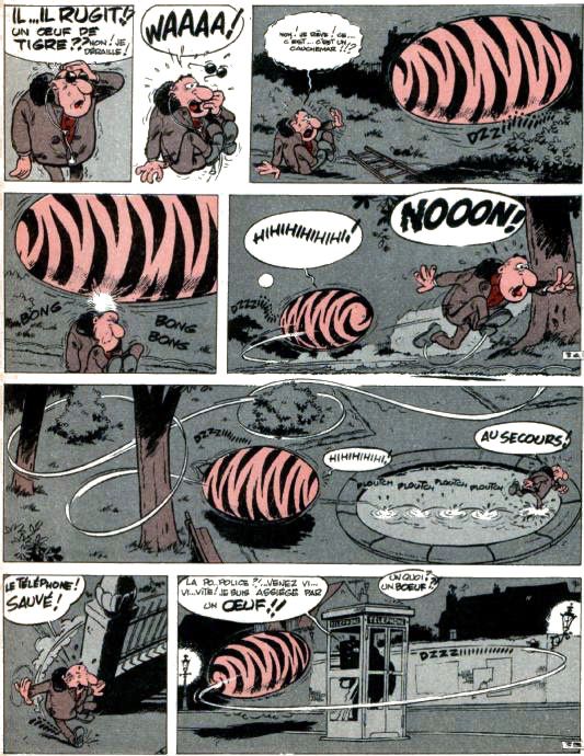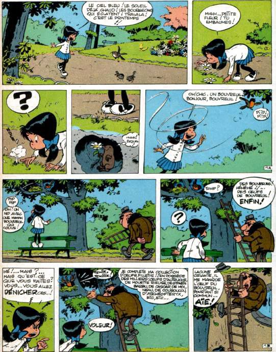 Pipette est le spécialiste des deux roues à moteur dans Spirou. C'est un farfelu. |