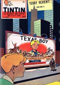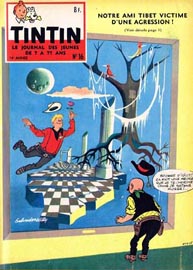 gauche dans un carré. Tintin et Milou sont au dessus du titre.