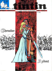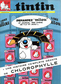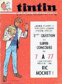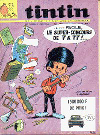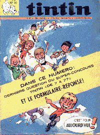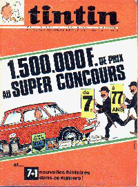 Le slogan : Le super journal des jeunes de 7 à 77 ans souligne le titre Tintin.